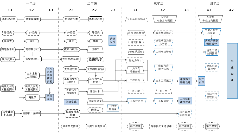 1. 掌握数学、物理等自然科学知识和一般性工程技术知识;了解现代管理技术的现状和发展趋势;掌握土木工程管理理论方法,并经历实际工程的训练。
