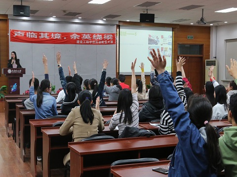 为丰富广大同学的校园文化生活,激发同学们学习英语、应用英语的兴趣,为热爱英语热爱表演的同学们提供一个展示自我风采的舞台,建设工程学部英语配音大赛于2018年4月3日在综合实验三号楼五楼多功能厅顺利举行。莅临本次活动的评委嘉宾有:校话剧团团长刘震,学部社团联合会主席郝思媛,学部学生会副主席程晨。
