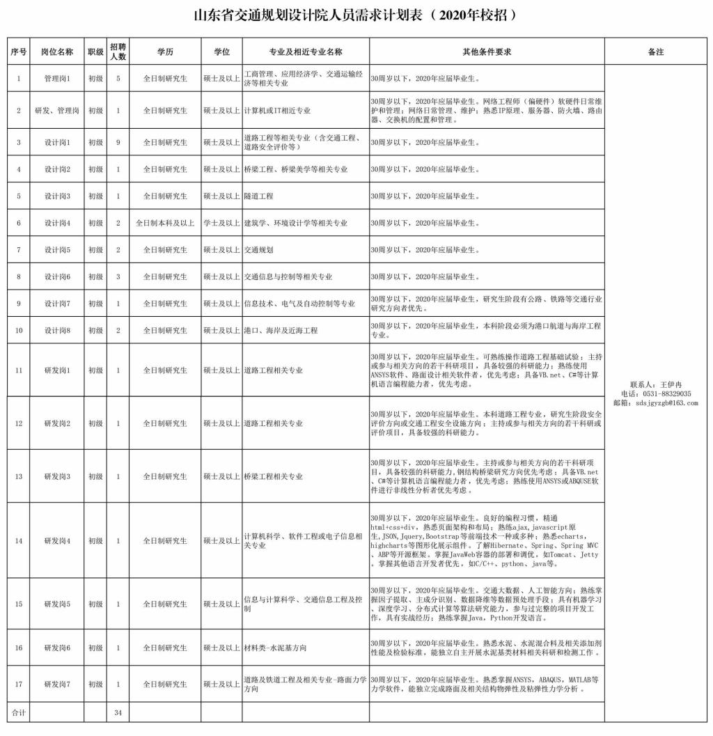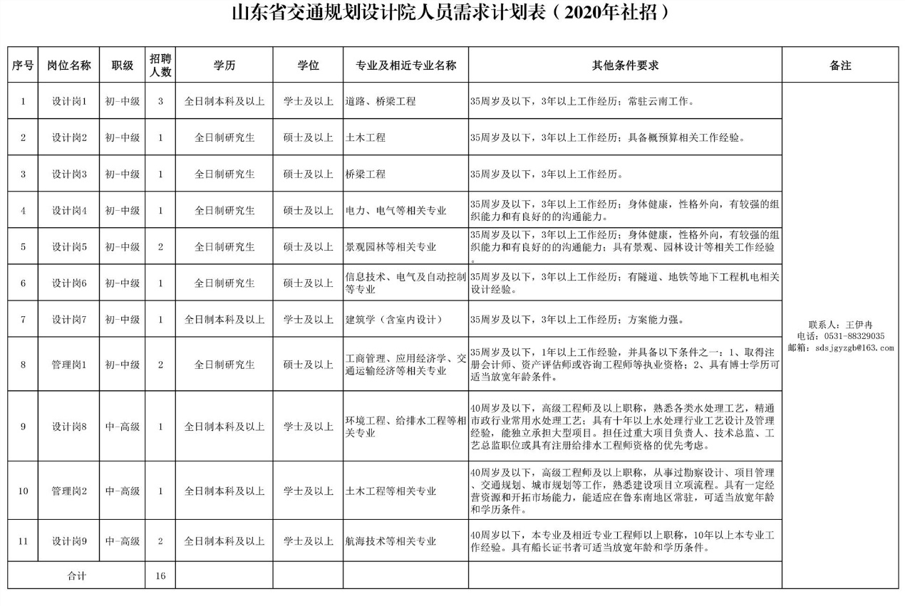 根据业务发展和工作需要,现面向社会公开招聘优秀人才。山东省交通规划设计院奉行“让奋斗者有力,与奉献者同行”的格言,真诚地期待您加入这支齐鲁大地上交通发展先行者的队伍,共同为交通运输行业发展规划和交通项目决策、实施、运营贡献智慧与力量!