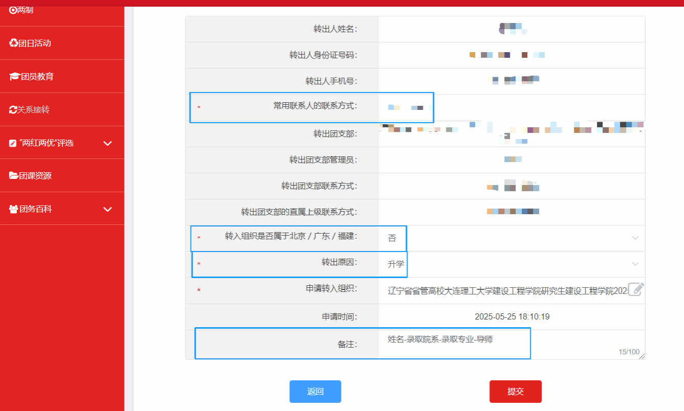 提交申请后,需要经过支部管理员审核后方能通过,如果发现转接迟迟未完成,需要及时联系所在团支部的团支书,让他们按时履行审核责任。