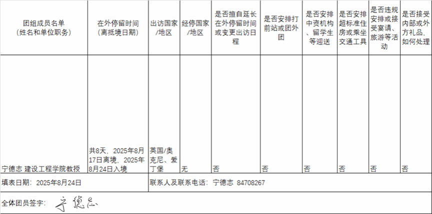 上述行程严格按照审批后的行程,执行中央八项规定及其实施细则精神报告表如下: