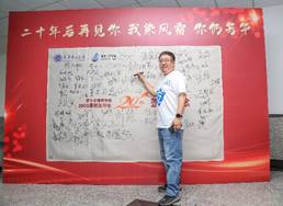 学生工作处处长郭驰作为2001届辅导员发表感言,既满含深情又诙谐幽默,将大会气氛推向高潮。他说在跨世纪最值得珍惜的四年,是他陪伴大家一同度过,感到非常荣幸。他希望大家平安健康,把对母校、对老师、对同学的感情延续下去。他说,母校为我们留下的教诲、价值观和美好情怀会越来越深厚,越来越清晰。作为共同成长的一代人,在成长中仍然要不断地探索、不断地选择、不断地收获,但最重要的是大家还没有忘记彼此。希望大家珍重,常相聚。