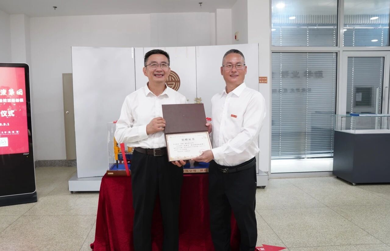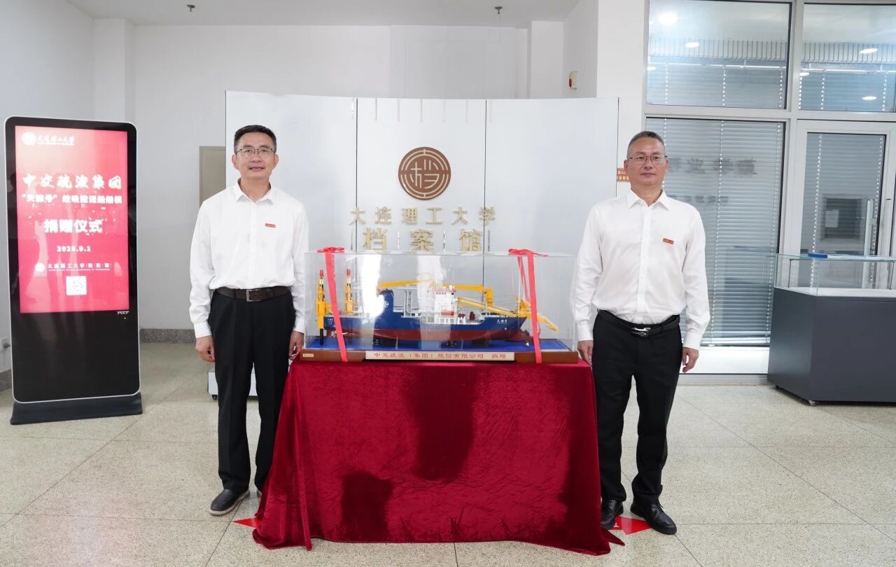 随后,刘永满校友来到档案馆代表中交疏浚向学校捐赠“天鲸号”绞吸挖泥船船模学校党委常委、副校长姚山代表学校接受捐赠并颁发捐赠证书。