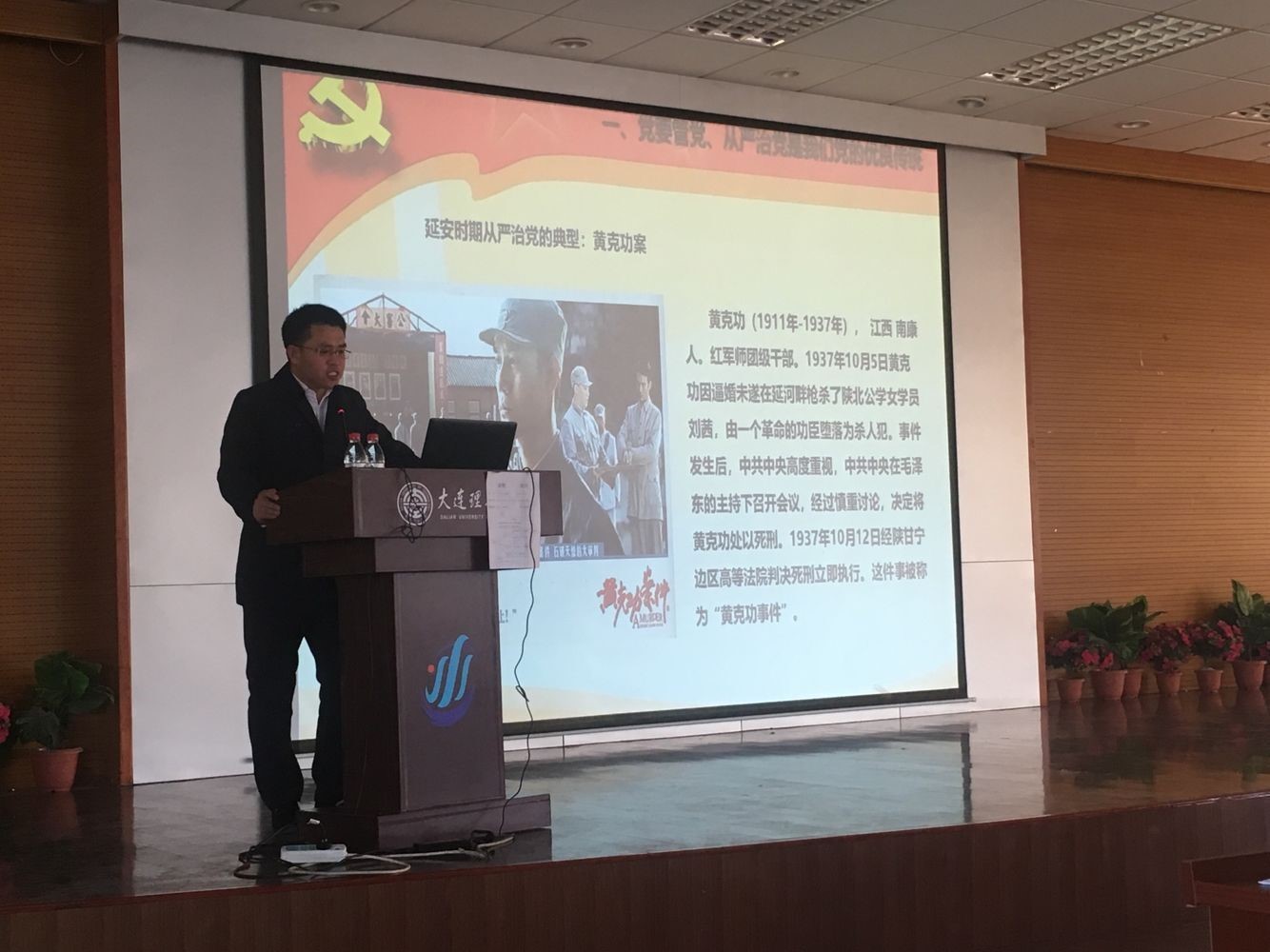 屈宏副教授从“党要管党,从严治党是我们党的优良传统”、“中国共产党是善于总结经验、运用经验的马克思主义政党”、“中国共产党时刻面临着如何理解自身的命运”以及党的十八大以来全面从严治党的新成就、新特色等方面出发,重点回顾了建国以来全面从严治党的经验、教训,阐述了党的十九大对从严治党的新要求,为大家上了一次精彩的党课,促进党员同志加深对党的十九大精神的理解,进一步增强“四个意识”、坚定“四个自信”、践行“两个维护”,牢记“从严治党永远在路上”,不辱使命、砥砺前行。