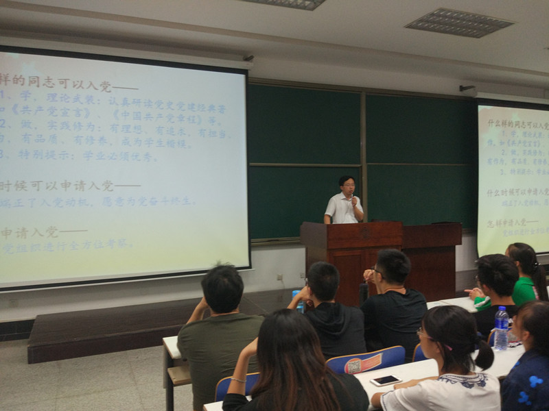 韩晓雨老师向大家介绍了学部党建工作情况,并就大学生党员的标准、如何以实际行动争取入党等方面进行了详细讲解。鼓励同学们做“政治素质好、群众威信高、学习成绩优异、社会工作出色”的优秀大学生。