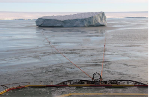 如何应对那些能漂移到船舶航行或者海洋工程结构物区域的小冰山?俄罗斯在夏季北极开阔水域或海面有冻结薄冰的地方开展了拖拉冰山的实验。他们用船舶把小冰山拖到一定地方,之后冰山的漂移路线就会远离航道或者海洋工程作业区,有些小冰山会就地融化了。