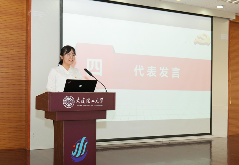 刘聪代表优秀党员发言,表达了对党组织和学校悉心培养的感激之情,表示将会牢记党组织的殷切期望,传承红色基因,汇聚时代力量,在新时代的宏伟蓝图中,用更高的标准要求自己,放飞青春理想,勇担国之大任。
