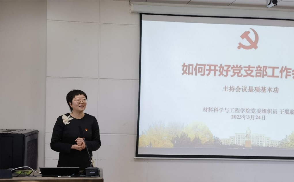 随后,学部启动了2023年学生党支部书记轮训工作。材料科学与工程学院党委组织员于聪聪以“如何开好党支部工作会议”为题,为全体学生党支部书记讲授轮训第一课。于聪聪老师从支部会议的类型、支部会议的重要意义以及如何提升支部会议成效等方面进行了讲授。