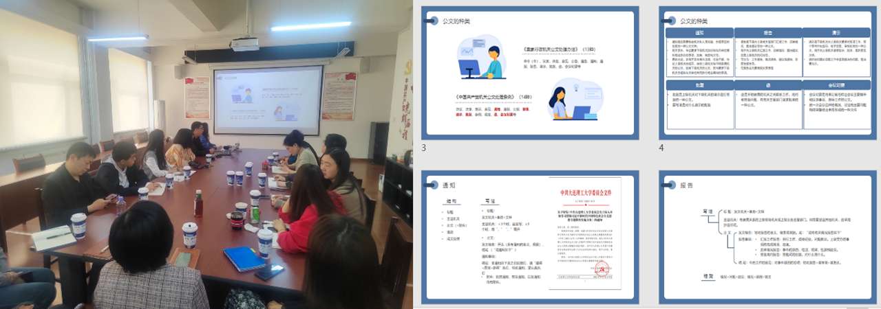 支部组织委员庞丰宇发表了以公文写作规范为主题的小课堂分享,从公文的分类、公文的格式与规范以及公文写作流程三个模块进行展开,对公文写作规范的要求及重要性进行了详尽的讲解和介绍。