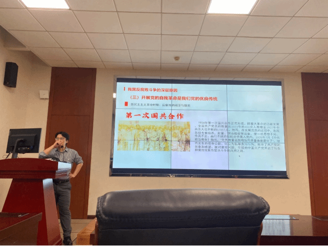 党的二十大报告从坚定不移全面从严治党、完善党的自我革命制度规范体系的战略高度对巡视工作作出新部署,强调“发挥政治巡视利剑作用,加强巡视整改和成果运用”。6月20号,党支部邀请研究生辅导员张泽远为支部党员带来“学习习近平新时代中国特色社会主义思想专题—全面从严治党”专题党课,张泽远讲述了开展党的自我革命是我们党的优良传统,以回顾第一次国共合作为引例,面对腐败问题,年轻的中国共产党开启了与各种腐败现象作坚决斗争的风雨之路。新时代反腐败斗争的策略—一体推进“三不腐”。党的十八大以来,以习近平同志为核心的党中央以“得罪千百人、不负十四亿”的使命担当,以“刮骨疗毒、壮士断腕”的坚定意志,推动党风廉政建设和反腐败斗争,力度之大前所未有,成效之大有目共睹。