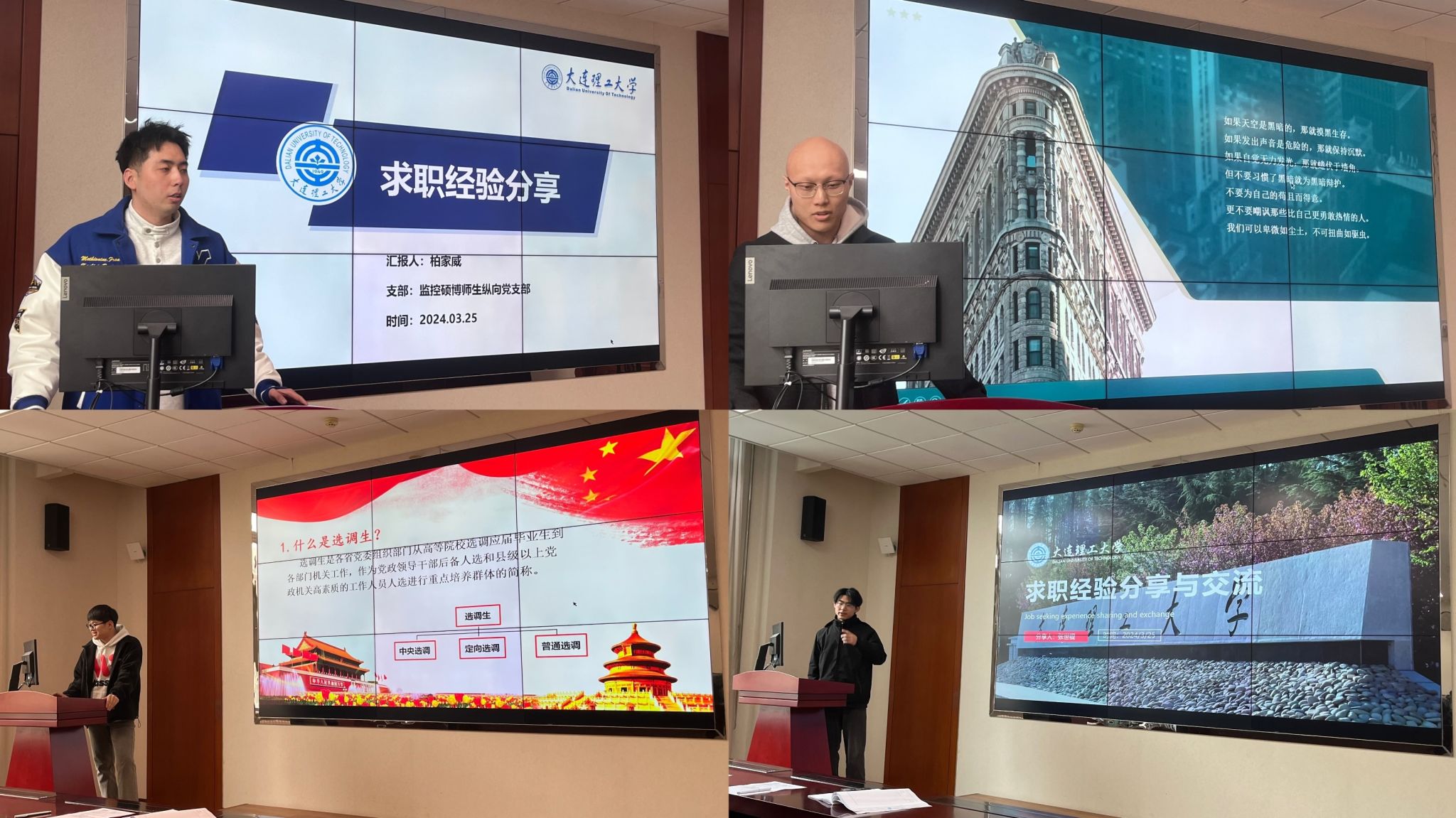 4月12日结构监控师生纵向党支部联合结构监控硕士研究生第二党支部共同举办四月理论学习研讨暨“职途领航”经验分享交流会。