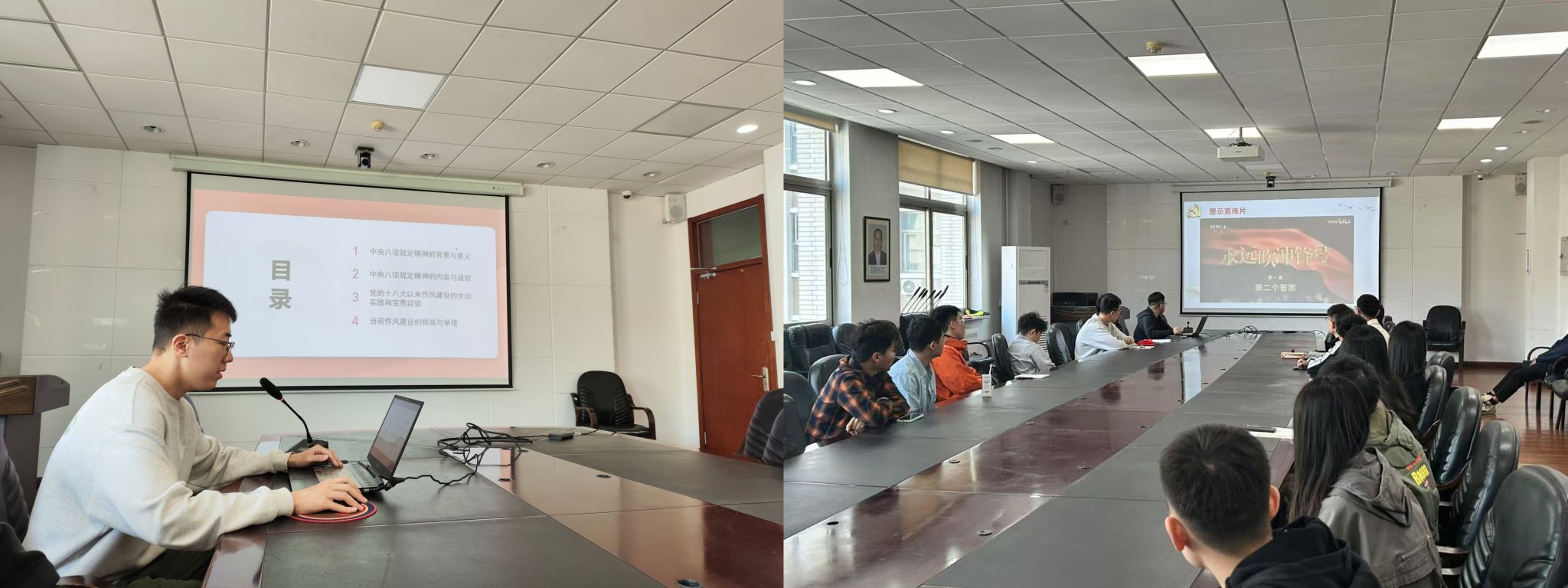 会上支部同时开展了深入贯彻中央八项规定精神学习教育,结构监控硕士研究生第二党支部书记车雨豪同志围绕中央八项规定精神的核心要义与实践要求,为与会党员讲授了主题鲜明、内容详实的党课,并组织观看了警示教育片。本次多元化的活动形式,既深入探讨了前沿发展方向,又结合科研工作实际开展了作风纪律专题学习,实现了党建科研共促进、双提升。未来,结构监控研究所三个党支部将继续探索党建科研深入融合的活动建设模式,为实现党建业务双强的目标不懈努力。