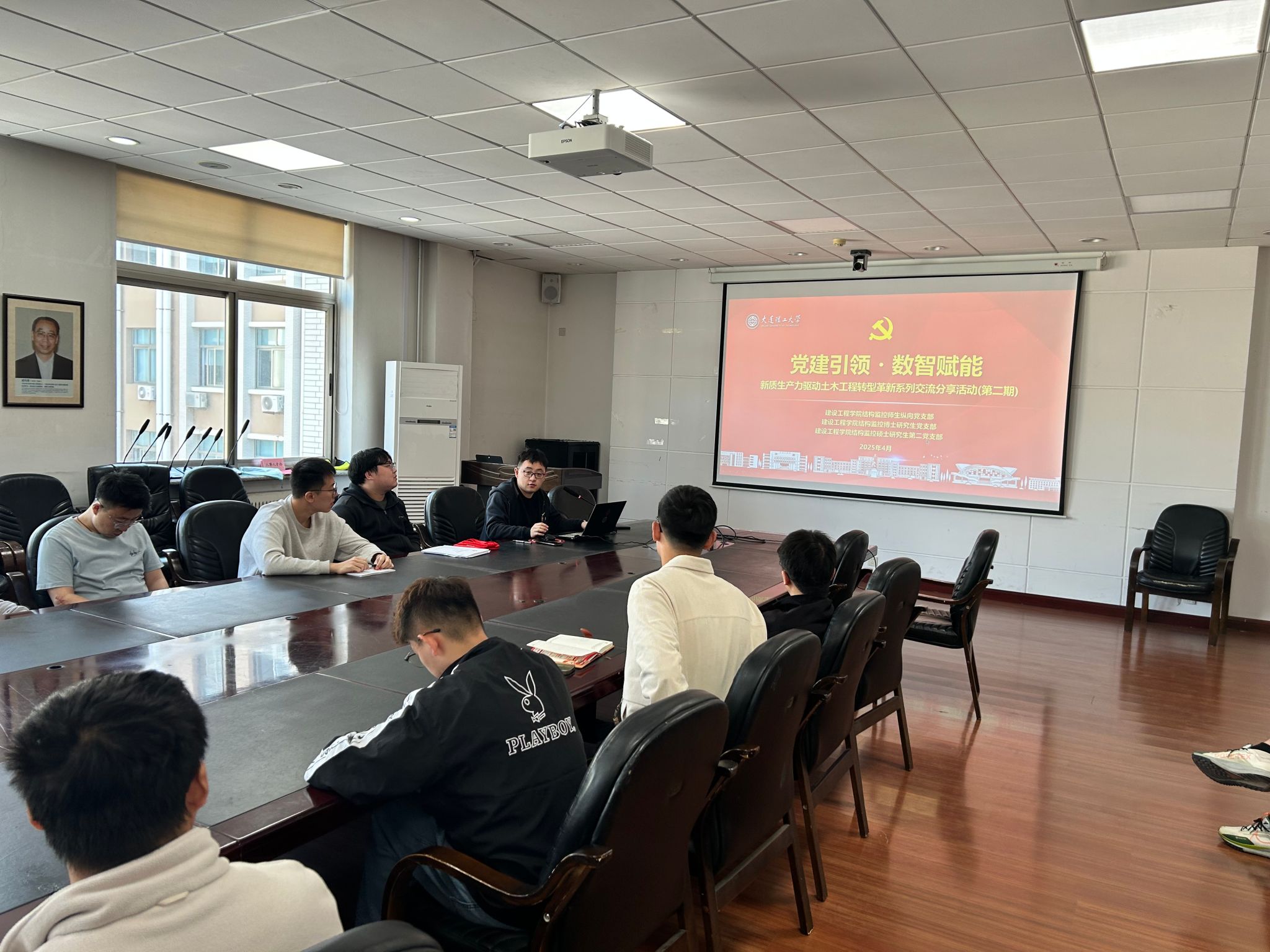 新质生产力正成为推动土木工程领域创新发展的关键力量。4月29日,结构监控师生纵向党支部联合硕士第二研究生党支部、博士研究生党支部成功举办第二期新质生产力驱动土木工程转型革新系列交流分享活动。本次活动聚焦智能建造与智慧运维前沿技术,通过技术研讨与案例分析相结合的方式,深入探索人工智能与土木工程学科深度融合的新路径与新可能。