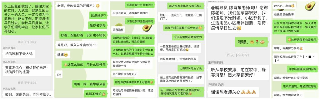 为辅导员发放《大疫心理自助救援全面读本》,组织辅导员线上学习,为疫情期间及返校后学生心理援助做好准备。通过网络、电话等形式与留校学生、湖北、湖南、河南等疫情严重地区学生一对一联络,关注学生身心健康,截至目前,与近400名学生开展网络谈心。辅导员深入家长群表达关心与关爱,推送疫情防控知识,坚定战胜疫情信心,缓解家长与学生焦虑情绪。