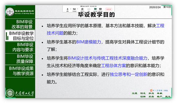 2月24日,原本是新学期开学的第一天,但受疫情影响,学校不得不延期开学。根据教育部和学校“停课不停学”和“停课不停教”的要求,大连理工大学建环专业建筑能源研究所在24日下午3点30分利用腾讯会议网络直播平台,为2016级建环专业部分本科毕业生开展了空调工程BIM毕业设计专题讲座的第1讲和第2讲;春节以来,建筑能源研究所根据学校疫情期间整体工作部署,已完成线上毕设指导全部课件等准备工作。今天参加网上直播的建环专业本科毕业生有23人,指导教师有张吉礼、马良栋、赵天怡、梁若冰、赵宇、王鹏、王永辉等7位老师,将承担不同章节的讲座和毕设指导工作;研究生有唐新鑫、张诚瑀、赵泽鹏和郭晓彤等4人,将承担BIM技术指导和毕设助教等工作。