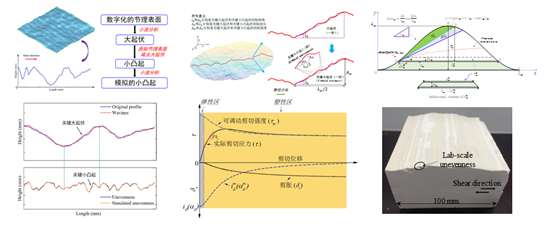 李迎春博士系我学部近年从澳大利亚新南威尔士大学引进青年教师,大连理工大学2019-2020‘星海骨干’。一直从事岩石节理力学实验及本构模型理论研究。大型岩体工程如岩质边坡和地下硐室的稳定性很大程度上取决于岩体结构面也就是岩石节理的剪切滑移特性。因此开发能精确可靠地预测岩石节理剪切滑移的理论模型对大型岩体工程的稳定性分析和预测至关重要。为克服常规理论模型经验化和非预测性的痼疾,李迎春博士提出了全新的可调动剪切强度理论框架,量化了岩石节理不同尺度粗糙结构对剪切行为的影响,解析了关键粗糙结构在剪切过程中的剪切破坏全过程,确立了多尺寸岩石节理剪切本构关系(图一)。此模型理论推导严格,所需参数物理意义明确,具有普适性和预测性。相关研究成果已发表在《International Journal of Rock Mechanics and Mining Sciences》、《Rock Mechanics and Rock Engineering》等岩石力学领域权威期刊上。