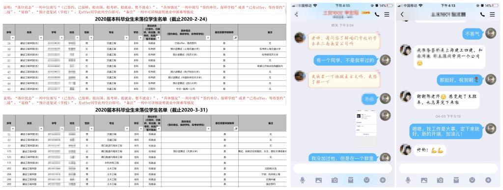 新冠肺炎疫情让这个就业季更加困难。研究生复试尚未开始、就业市场的用人需求、招聘岗位也面临缩减、“云”端面试给毕业生带来更大挑战。面临诸多不利因素,建设工程学部积极应对,对湖北籍毕业生、就业意向不明确学生进行一对一谈话,对全体同学落位情况进行两轮排查;召开“一人一策”网络视频指导会,充分了解尚未落位同学就业进展、就业中存在的困惑以及就业意愿,全面了解毕业生目前就业情况。