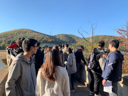 下午由大连市水利水电勘测设计研究院的赵岩松老师作向导,带领同学们先后参观了大西山水库和王家店水库。赵老师由浅入深,先向同学们介绍了两个水库的发展历史、地理位置等基本情况,这两水库均位于大连的“母亲河”—马栏河上,大西山水库位于下游,王家店水库位于中下游,之后带领同学们参观并不时作讲解。赵老师讲到大西山水库取水塔以及阶梯消能都是设计精妙的地方,阶梯消能减少了对下游的危害,更是设计者思想超前的体现;而王家店水库依山而建,溢流段长度不足,设计者独具匠心地采用侧堰,让同学们惊叹设计者的精巧设计,也在启发着同学们以后设计水库要多思多想,尽量设计出最优的方案。