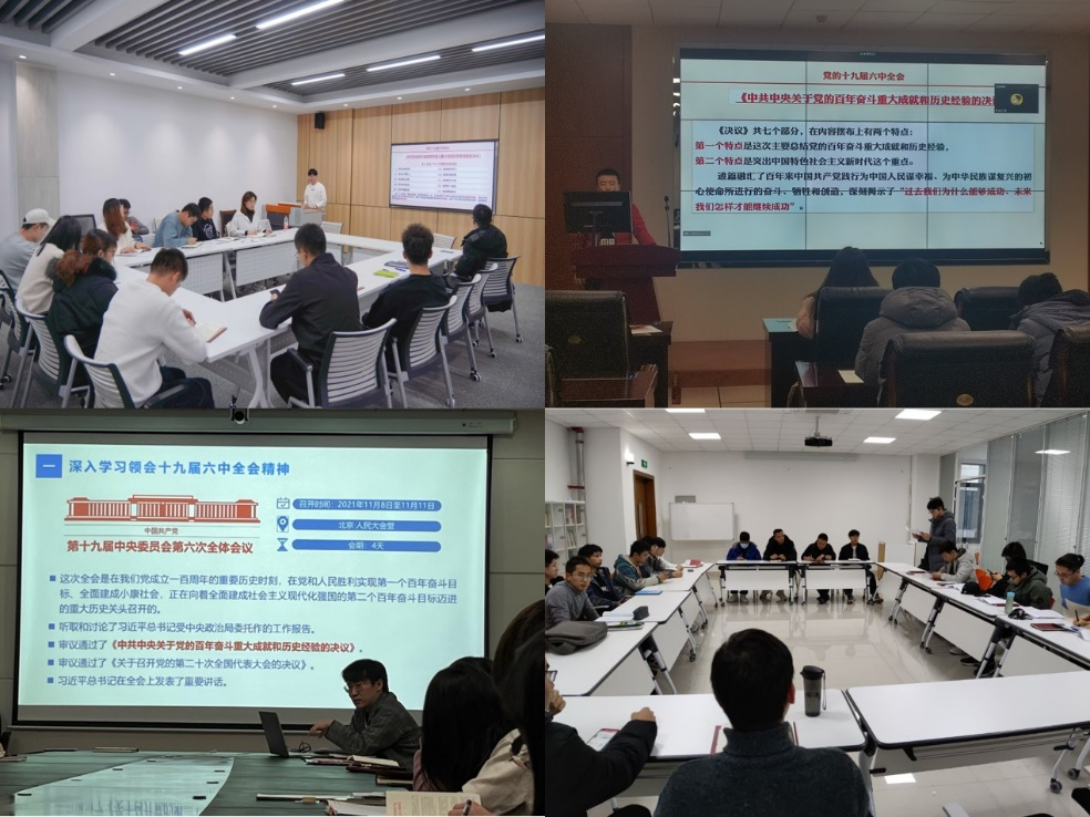 学部党委依照“四定”原则,结合主题党日活动,部署全体党支部围绕深入学习贯彻党的十九届六中全会精神组织开展理论学习与专题研讨。11月学部全体党支部按部署要求认真学习《中国共产党第十九届中央委员会第六次全体会议公报》、《中共中央关于党的百年奋斗重大成就和历史经验的决议》。为进一步深入学习全会精神,12月学部党委部署开展党支部书记讲党课等活动。各党支部通过集中研学、党员自学、研讨交流等多种形式,组织全体师生党员开展各具特色的学习活动,深入系统学、融会贯通学,实现全会精神宣贯全覆盖,用全会精神统一思想、统一意志、统一行动。