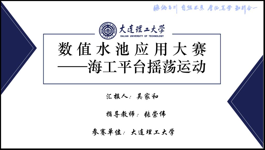 12月29日,2021年全国船舶工业CAE软件数值水池应用大赛全国总决赛成功举行,来自全国26所高校的168支研究生和本科生参赛队伍展开激烈角逐,我校学子脱颖而出斩获全国一等奖2项、二等奖5项、三等奖9项。其中,建设工程学部马玉祥教授指导的研究生团队(孙铭伯、金国庆、焦自璐)获船舶波浪增阻赛项全国一等奖,张崇伟副教授指导的本科生团队(吴家和、尚宝怡、徐雅轩)获海工平台摇荡运动分析赛项全国一等奖,宁德志教授指导的研究生团队(谢志刚、何耀华、姚一晟)获海工平台摇荡运动分析赛项全国二等奖。