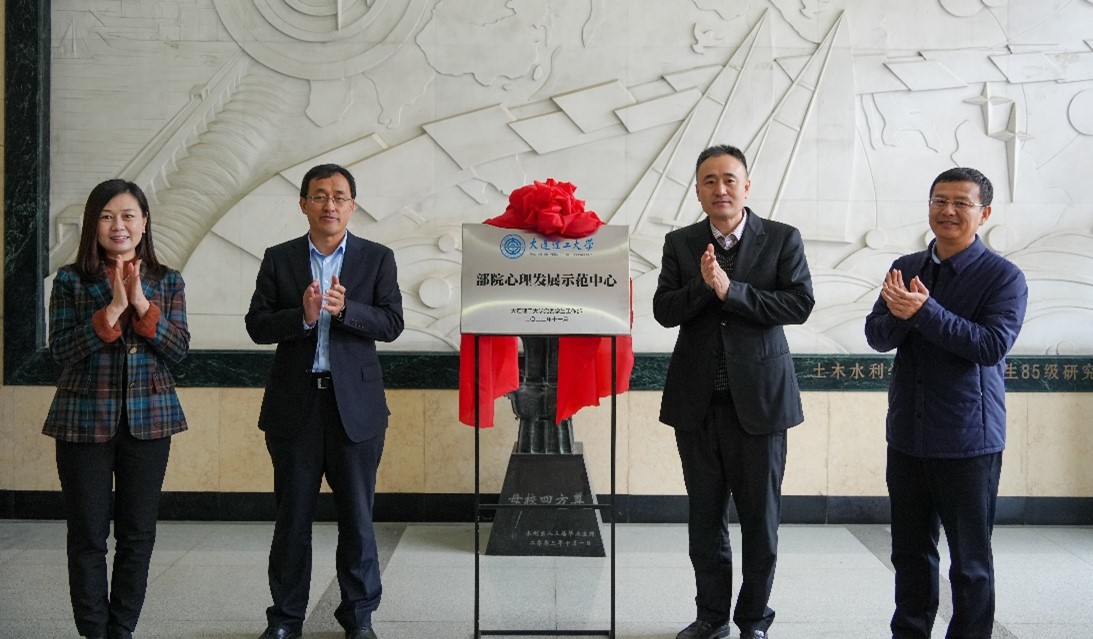 大连理工大学党委副书记、副校长张言军对学部心理咨询室的配备和心理咨询师的工作表示肯定,对学部心理工作提出宝贵建议,与建设工程学部党委书记于龙、部长李钢一同,为建工学部心理发展示范中心揭牌。