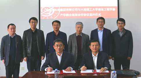 大连市水务集团有限公司副总经理赵鹏,建设工程学部部长李钢分别代表双方签署产学融合框架合作协议。