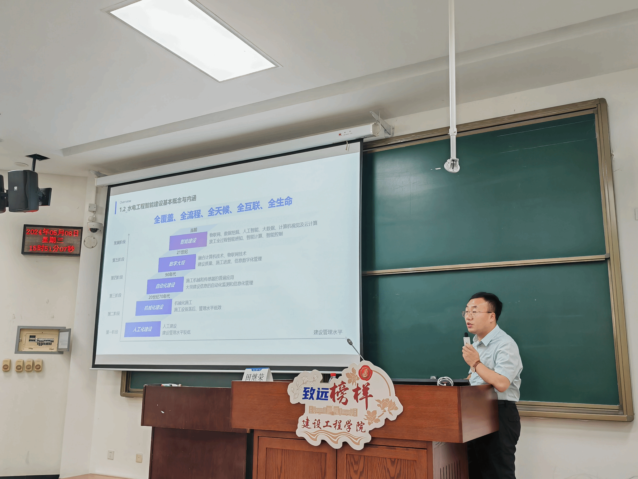 通过田继荣副院长精彩生动的分享,本次讲座的参会人员对于水利水电行业的发展有了不同于以往的认识,对于当下智能建造领域有了更加深入的了解;此外,田继荣副院长在对各个项目进行介绍时流露出来的自豪感也深深感染了同学们,启发我们要为了国家建设去贡献属于我们的力量,努力实现自身的价值。