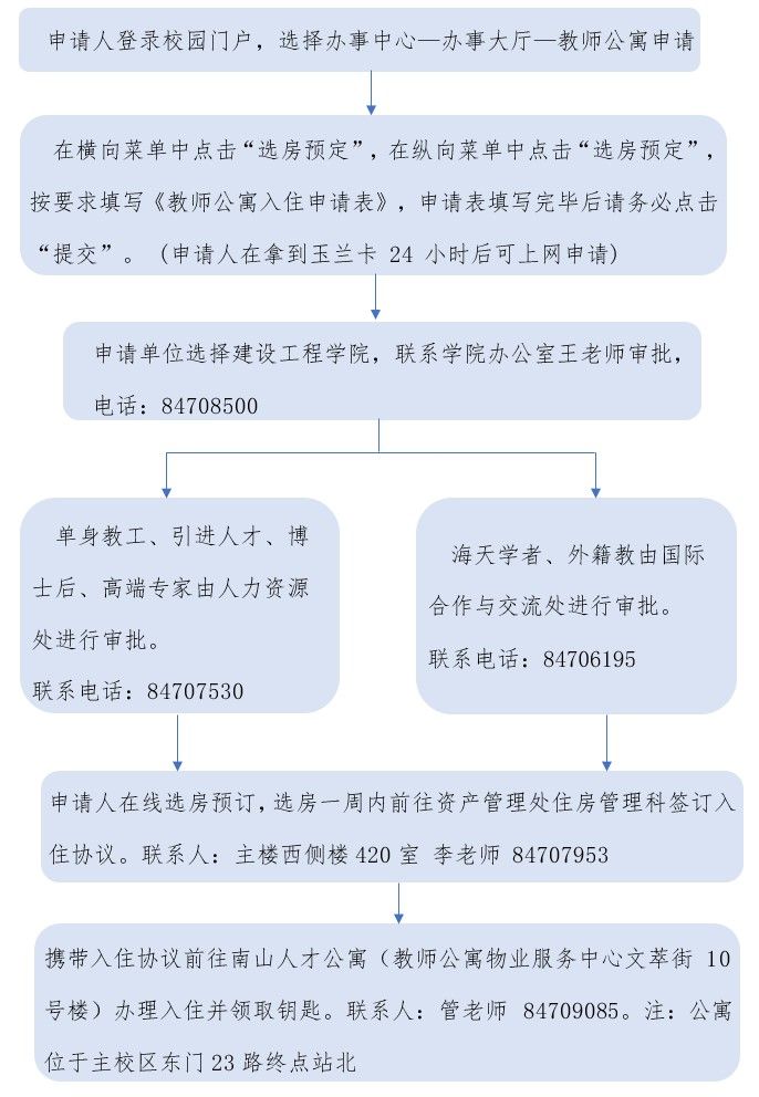 单身教工、引进人才、统招统分博士后、高端专家、外籍教师、海天学者。本人申请上限为一次,出现问题可联系学校资产管理处住房管理科李老师(电话:84707953-1)进行重置。