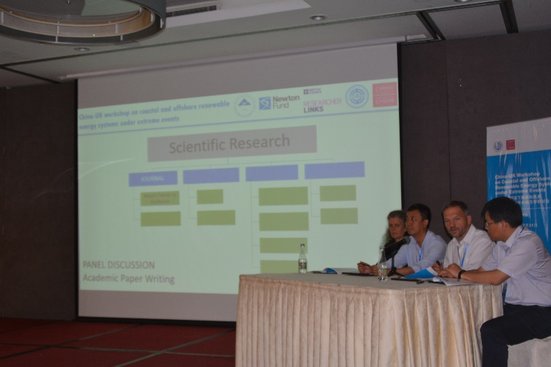 7月29日下午,河海大学张继生教授进行了题为“Tidal Stream Energy Pilot Project in Zhoushan Water, China”的主题报告,报告对我国舟山潮流能试点项目进行了介绍。普利茅斯大学的Alison Raby教授则进行了题为“Extreme Waves and the Structures that Dare to Stand”的主题报告,报告中从多个角度描述了极端波浪对灯塔的冲击过程。随后,《Applied Ocean Research》主编、《Journal of Hydraulic Engineering-ASCE》副主编、《Journal of Hydro-Environment Research》副主编、《Journal of Ocean Engineering and Marine Energy》副主编四川大学林鹏智教授与《Journal of Hydraulic Engineering-ASCE》、《Journal of Hydraulic Engineering-IAHR》副主编、《International Journal of Sediment Research》副主编英国伦敦大学学院Thorsten Stoesser教授针对科研写作和投稿中的常见问题,进行了现场解答,让参会人员获益匪浅。最后,会议通过圆桌讨论的方式让青年老师与行业领军教授进行了更深入的交流。