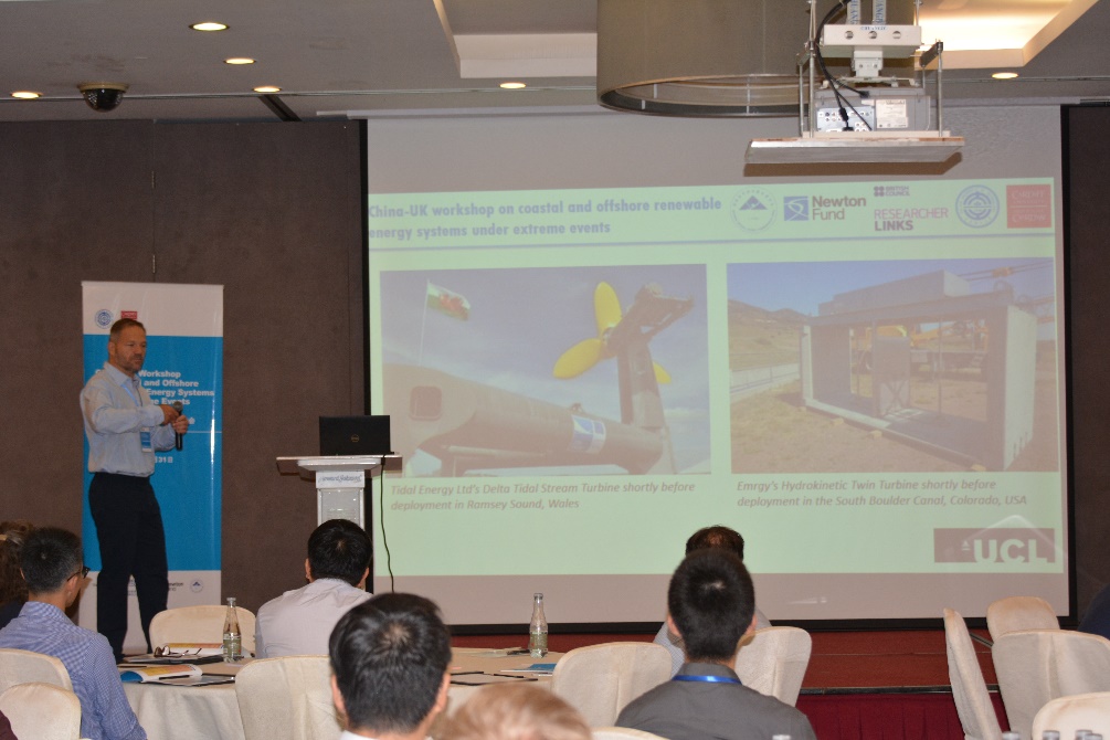 7月29日上午,大连理工大学马玉祥教授、卡迪夫大学谢志华博士、大连理工大学党委常委董国海教授和英国文化教育协会Rice Li先生分别进行了会议开幕致辞。随后,牛津大学Richard Willden教授进行了题为“Tidal Stream Energy – Designing for Performance”的主题报告,报告对中国、英国潮流的范围及利用情况进行了概述,并对潮流涡轮工作时的受力及流场进行了分析。之后,为了加深中英双方学者的互相了解,参会人员每人3分钟的自我介绍。
