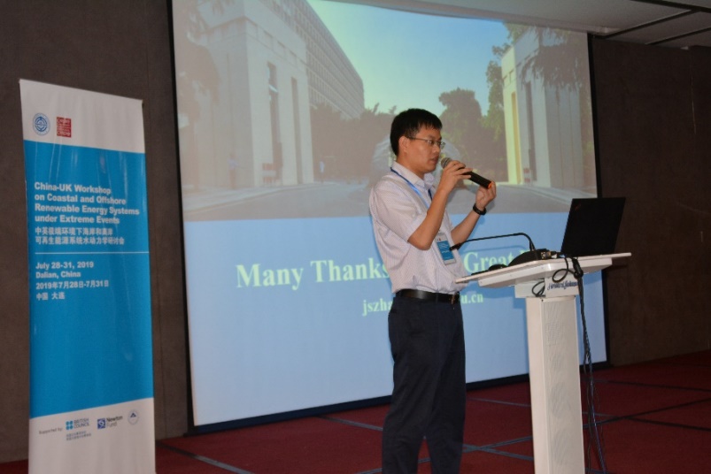 7月31日,上海交通大学李晔教授进行了题为“Numerical and Experimental Studies of Offshore Renewable Energy System”的学术报告。随后,英国文化教育协会Rice Li先生、中方代表马玉祥教授和英方代表谢志华教授对中英双方的合作机会进行了叙述,并与参会人员针对合作的形式内容等细节进行了详细的讨论。