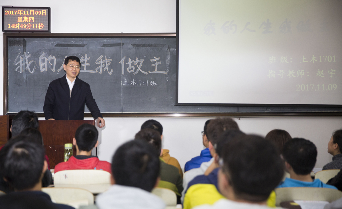 为推进党的十九大精神进课堂,11月9日下午,郭东明校长走进《思想道德与法律基础》小班研讨,与建设工程学部土木1701班的同学一起讨论,交流对党的十九大精神的理解,勉励广大青年将青春梦融入中国梦,在坚守崇高的信仰中砥砺前行。