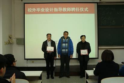 首先,王宝民老师宣读了聘任中国建筑东北设计研究院有限公司大连分院高嵩等5人为大连理工大学建设工程学部土木工程专业兼职毕业设计指导教师的通知,并由土木工程学院院长何政教授为兼职毕业设计指导教师代表颁发聘书。