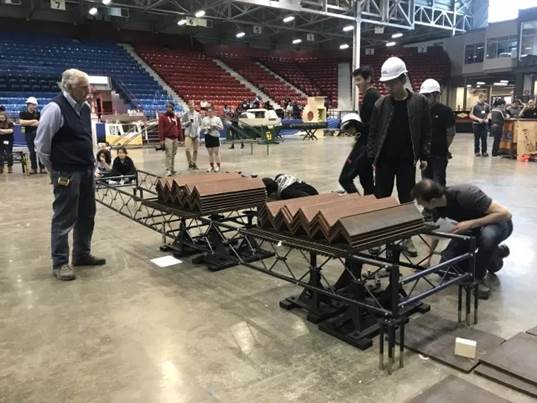 本次国际钢桥比赛,我校选派六名不同年级的土木工程专业(含国际班)的学生会员参赛,分别是土木工程国际班1402张家宸、王雪彦,土木工程国际班1501高兴、土木工程1603班孙琦华、土木工程国际班1701李一超和土木工程1704班刘秋雨,建设工程学部崔瑶副教授担任指导教师。作为ASCE下属最为悠久的赛事,钢桥比赛以其评价方面全,制作周期长,协同要求高而闻名。本次大连理工大学分会参赛赛区,汇集了魁北克大学、纽约州立大学布法罗分校、蒙特利尔大学、康奈尔大学、伦斯勒理工学院等国际知名高校。