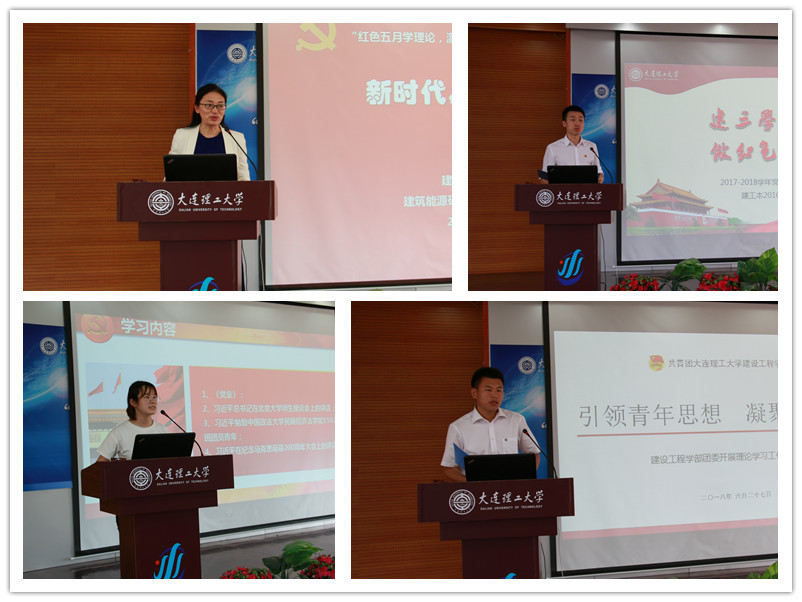 建筑能源硕博第二党支部书记赵金玲老师、抗震博第一学生党支部书记郭凌云以及本2016级学生党支部书记刘宏鑫分别代表硕士生、博士生和本科生支部,对学部党委开展的“红色五月学理论、激昂青春做标兵”主题理论学习月活动的实施情况进行了汇报。理论学习月活动开展以来,学部各基层支部高度重视,精心组织,分别开展了《党章》抄写书法大赛、学习习近平总书记在纪念马克思诞辰200周年大会上的讲话、学习习近平总书记在北京大学师生座谈会上的讲话、学习习近平总书记勉励中国政法大学团员青年讲话、纪念马克思诞辰200周年寄语、手绘党的光辉历程等形式新颖、内容丰富的活动,引发师生党员对时代担当、建设强国及自身责任的深入思考,在学部范围内掀起了理论学习的热潮。学部第八届团委副书记徐志浩同学,对学部团委开展理论学习工作情况进行汇报,介绍了学部“薪火”理论学习班的成立运行、活动开展及取得成效的情况,号召大家夯实理论基础,加强理论学习,不忘初心,建功新时代。