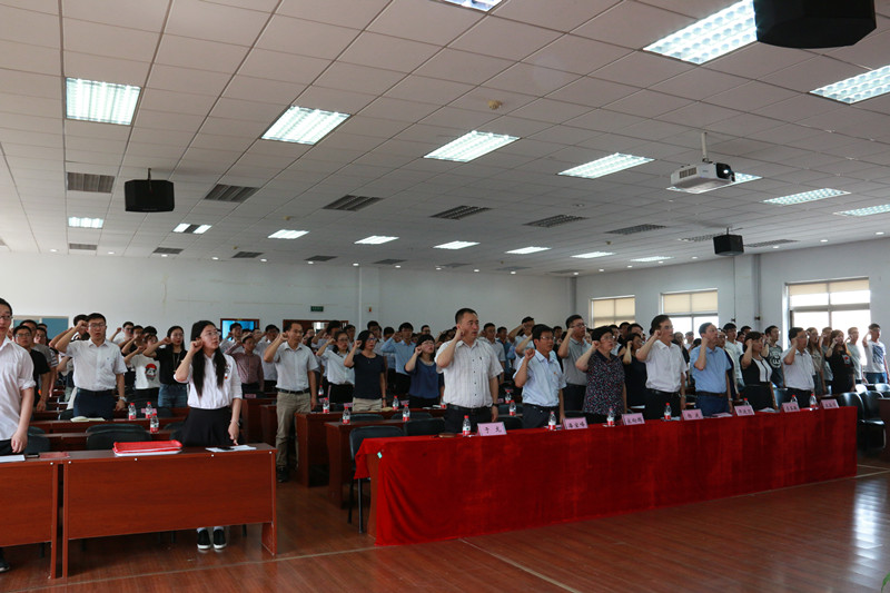 为庆祝中国共产党建党97周年,表彰2016-2018年度“两优一先”先进集体和优秀个人,加强党员教育,激励广大学生党员更好地发挥先锋模范作用,6月27日下午,建设工程学部在综合实验三号楼五楼多功能厅隆重举行2018年庆“七·一”表彰暨新党员宣誓大会。学部党委书记杨庆教授,党委委员宋向群教授,党委委员年廷凯教授,党委委员潘宝峰教授,学部党委副书记兼副部长李英敏教授,学部党委副书记兼副部长、纪委书记王晶华老师,各教工党支部书记,各学生党支部支委委员、受表彰的先进集体和优秀个人以及全体预备党员出席了本次大会。