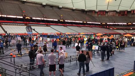 4月20日,访问团来到了本次美国土木工程师协会(ASCE)纽约上州学生会议比赛的主办地——雪城大学。在该校期间,访问团与雪城大学学生分会指导教师Prof. Houssein Ataei进行了交流,Prof. Ataei向访问团介绍了雪城大学的钢桥团队的组成情况、历届比赛情况等,另外还向访问团简要介绍了雪城大学学生分会举办的一些活动包括学术讲座和社区以及其他学校的相互联系等。访问团还与本次美国工程师学会纽约上州学生会议的联合主席Rachel Murello和Will Guida进行了交流,双方针对学生科研学习方法进行了交流讨论。此外,在该校钢桥项目负责人Steven C. Lisowski Ⅱ陪同下,参观了该校结构工程实验室。Steven详细介绍了该校参加ASCE钢桥比赛作品的设计思路、制作流程和准备情况,并耐心解答了学生所关心的钢桥设计细节等专业问题。