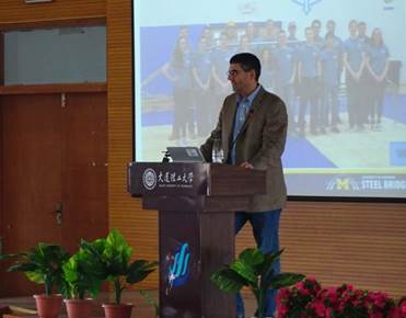 为帮助土木工程国际班学生了解美国大学现状,拓宽本科生国际视野,2017年5月3日上午10时,美国土木工程师协会(ASCE)大连理工大学学生分会在综合实验三号楼五楼多功能厅举办了第一次学术讲座活动。本次活动特别邀请到了美国密歇根大学结构实验室主任、该校ASCE学生分会钢桥项目组指导教师Prof. Jason McCormick担任主讲,我校土木工程学院崔瑶副教授,国际交流与合作处王老师应邀参会。