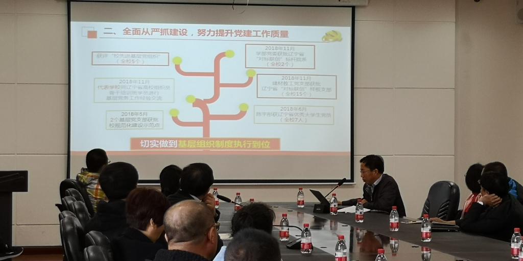 建设工程学部党委副书记兼副部长、纪委书记王晶华介绍了学部概况、师资队伍、人才培养、科学研究、文化传承与创新等各方面工作,并就学部党委作为辽宁省“对标联创”标杆院系,在组织建设、政治生活、组织发展、党员管理、学习教育等各项基层党建工作方面的情况进行了详细介绍。