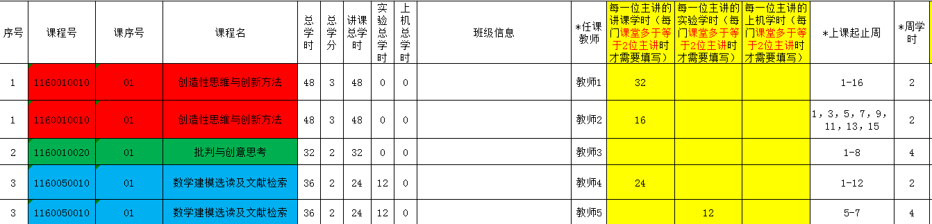 原则上,每门课堂只允许安排一位主讲教师。如确有特殊情况,对于大于32学时的课程,如需安排两位主讲教师,需要明确每位教师各自的教学任务(含授课时间)。同时实验实习实践类课程的所有主讲教师也需填入到系统中。
