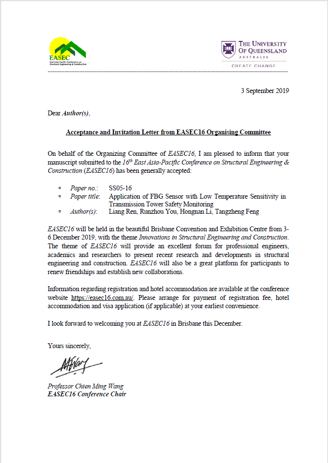 应 Chien Ming Wang 教授 邀请,我单位 任亮 拟赴 澳大利亚 国家(地区)进行工作访问(学术交流)。现将该团组拟出访情况公示如下: