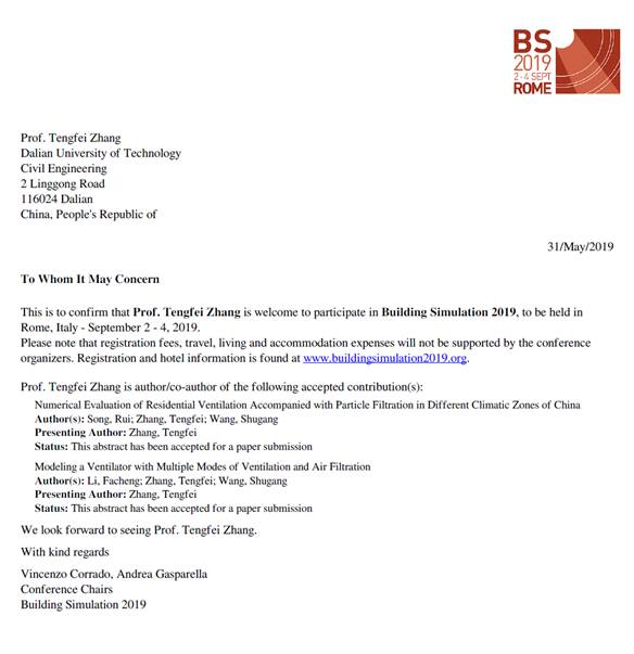 应 建筑模拟2019(Building Simulation 2019)的邀请,我单位 张腾飞 拟赴 意大利 国家(地区)进行工作访问(学术交流)。现将该团组拟出访情况公示如下: