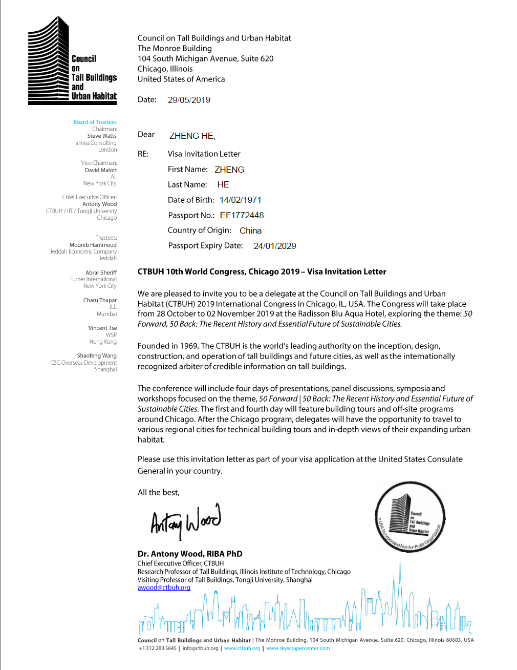 应 第10届高层建筑与城市住宅委员会(CTBUH)执行负责人Antony Wood先生邀请,我单位 何政 拟赴 美国 国家(地区)进行工作访问(学术交流)。现将该团组拟出访情况公示如下: