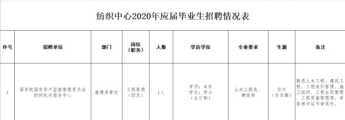 附件:1. 纺织中心2020年应届毕业生招聘情况表