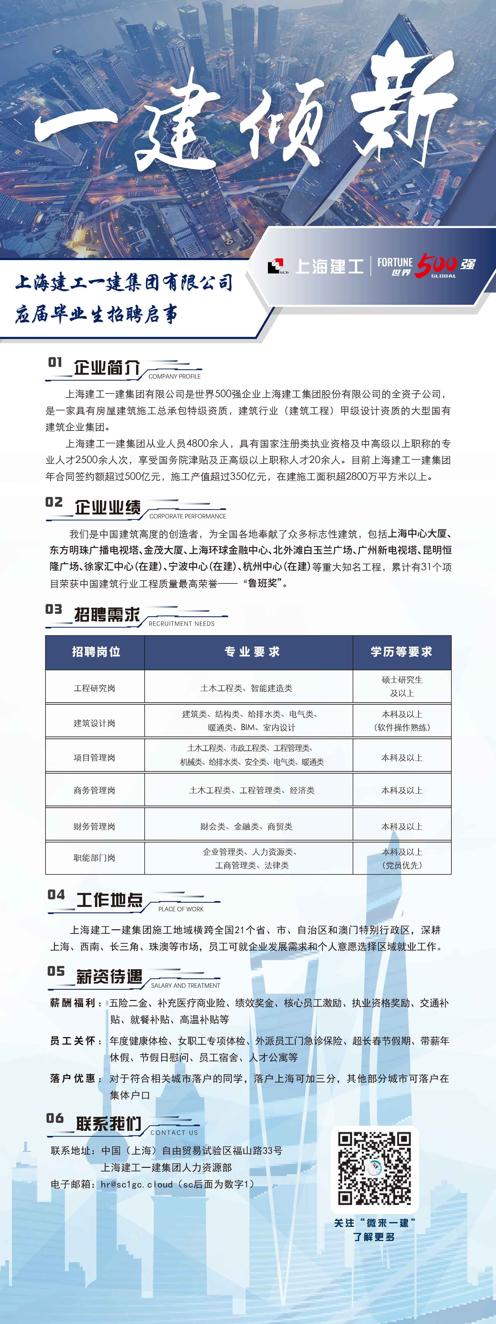 上海建工一建集团有限公司(以下简称一建集团)成立于1953年,是上海建工集团股份有限公司的全资子公司。本公司是一家具有房屋建筑施工总承包特级资质和建筑行业(建筑工程)甲级设计资质的大型建筑企业集团,注册资金6亿元人民币,从业人员总数达到4500余人,各类经济、技术人员2000余人,拥有一、二级建造师400余人。