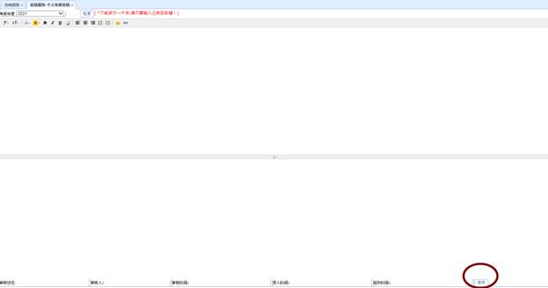 2、请所有教职工于3月13日前在业绩系统中“总结报告-个人年度总结”中填写个人2021年年度总结(不大于1000字),然后点击保存,如下图所示。学部从系统导出个人年度总结后存档到个人人事档案。。