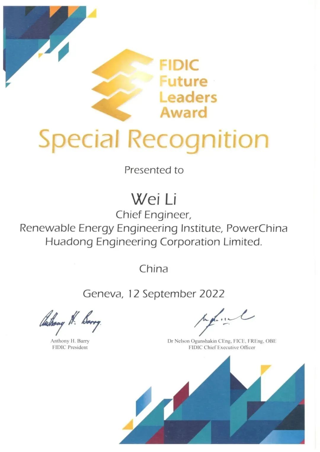 菲迪克是世界各国咨询协会的全球代表机构,为超过100万名专业人士和全球100多个国家的40000家公司服务。作为国际上最具权威性的咨询工程师组织,菲迪克所颁奖项也被誉为国际工程咨询领域的“诺贝尔奖”。菲迪克未来领袖奖每年在全球范围内表彰对工程咨询行业、所属行业协会及社会的贡献突出,具有高水平专业技术能力和领导力的工程师。