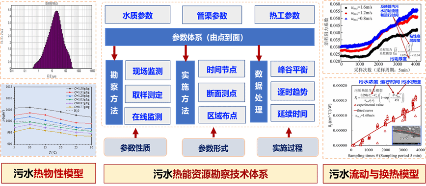 马良栋副教授等主持完成的项目“城市全流城污水热能资源化高效利用关键技术”,针对城市全流域污水热能利用工程中,存在污水热能资源能否用与用多少、污水热能如何高效用、以及污水热能资源怎么用等问题。首先提出了城市全流域污水热能资源化利用勘察与规划方法,为城市污水热能资源有组织、最大化利用提供基础;其次提出了城市原生污水热能利用中的两相流动及强化换热理论,开发污水专用换热和制热装备,为污水换热制热装备热工计算及工艺系统水力计算奠定基础、并解决污水源热泵系统关键换热制热装备缺失的问题;最后,提出了城市原生污水资源化利用供热供冷系统成套工程技术,解决了原生污水源热泵工程系统构筑物设计缺乏依据、建造难的问题。