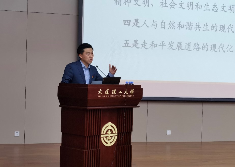 为贯彻落实学校《关于深入开展学习贯彻习近平新时代中国特色社会主义思想主题教育实施方案》,弘扬马克思主义学风,落实串并联学习新机制,切实推动“一融双高”,4月13日下午,建设工程学部党委在伯川图书馆报告厅开展《准确理解和深入推动中国式现代化》专题讲座,学部党委书记于龙、党委委员、副部长王胤、全体师生党支部书记、支部委员及2023年学生发展对象参加讲座。讲座由大连市党的二十大精神宣讲团成员、大连理工大学马克思主义学院刘鹏飞主讲,由学部党委组织员韩晓雨主持。