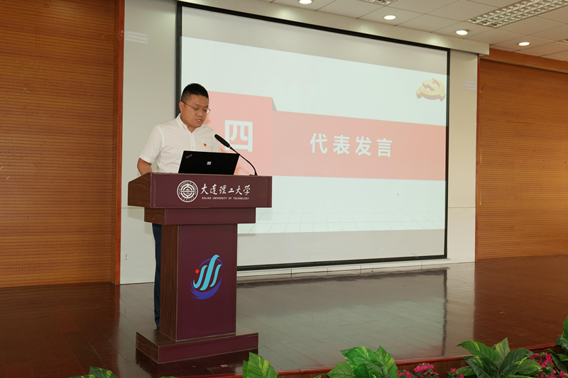 刘聪代表优秀党员发言,表达了对党组织和学校悉心培养的感激之情,表示将会牢记党组织的殷切期望,传承红色基因,汇聚时代力量,在新时代的宏伟蓝图中,用更高的标准要求自己,放飞青春理想,勇担国之大任。